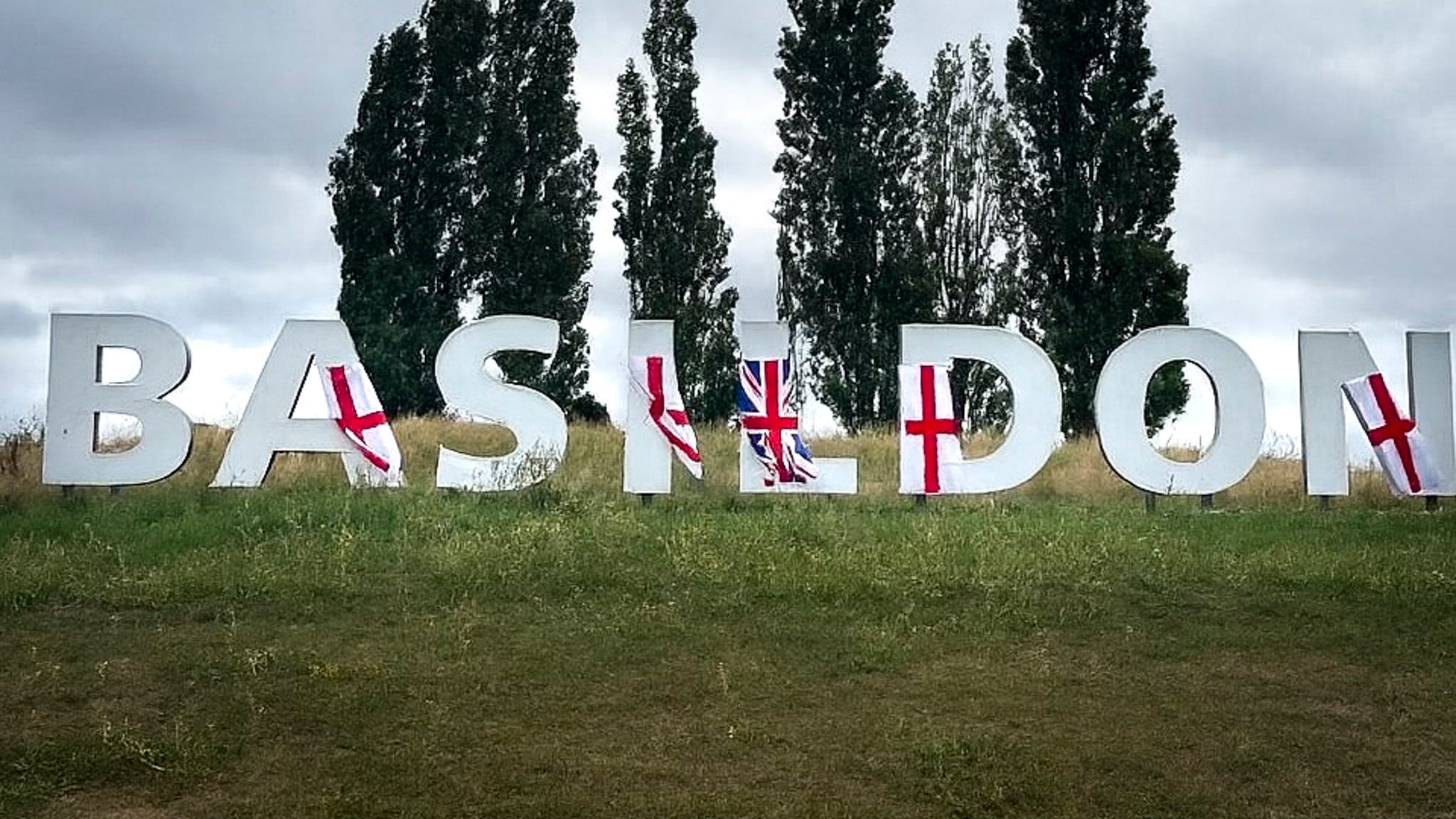 The infamous “Basildon” sign on the hill is currently covered in England flags. And standing there looking at it, I felt a sadness I couldn’t quite name. Because it would be too easy to roll our eyes and say: “Ugh, look at the state of it.” But that misses the point.